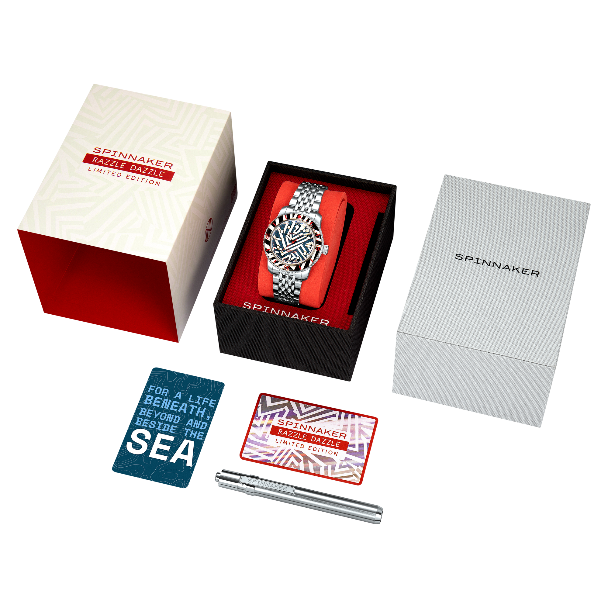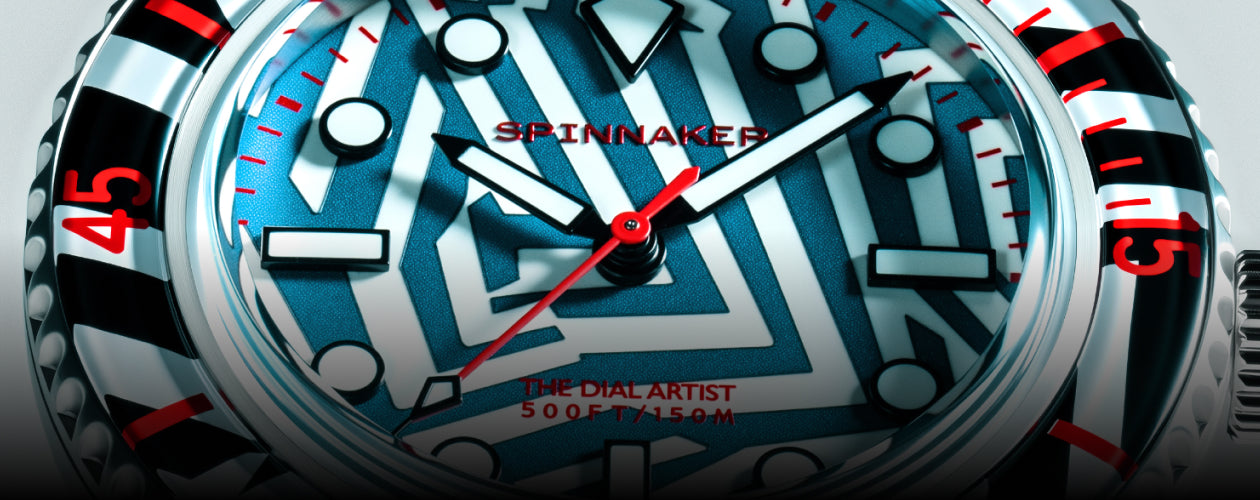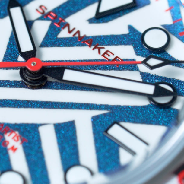 Spinnaker reunites with Chris Alexander, aka The Dial Artist, to present the Razzle Dazzle Limited Edition — a revival of the historic “Dazzle Camouflage,” the striking geometric pattern painted on World War I and II ships to mislead enemy rangefinders. Each dial is hand-painted by The Dial Artist, transforming the timepiece into a canvas where every stroke, angle, and contrast is unique.