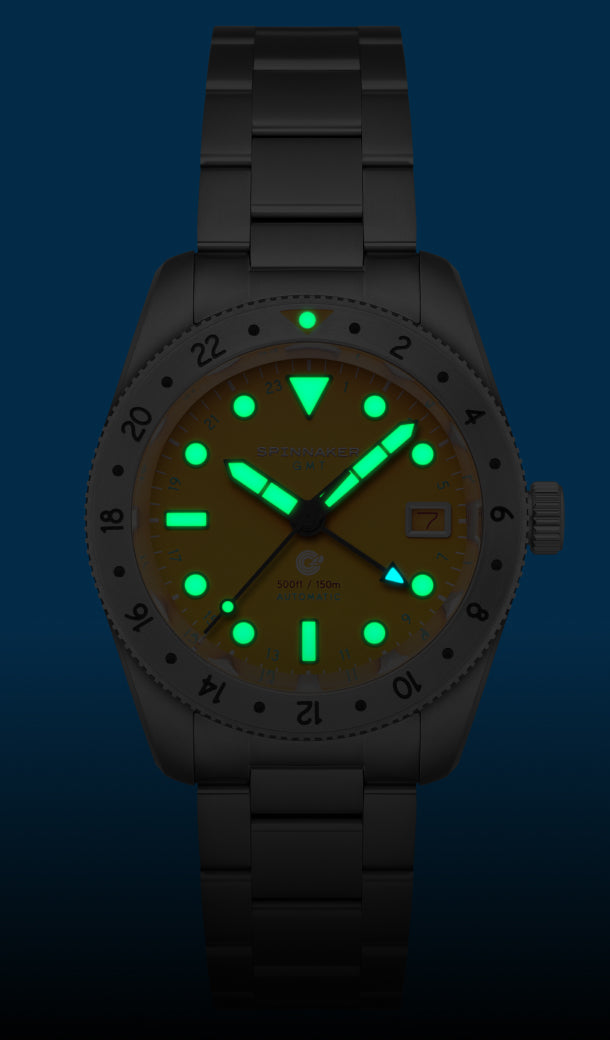 Designed for the avid diver and adventurer, our watches feature radiant luminescence that ensures clear readability in the darkest depths and low-light conditions. Whether exploring underwater realms or navigating night-time escapades, Spinnaker's luminous dials and hands provide the glow you need to stay on course.