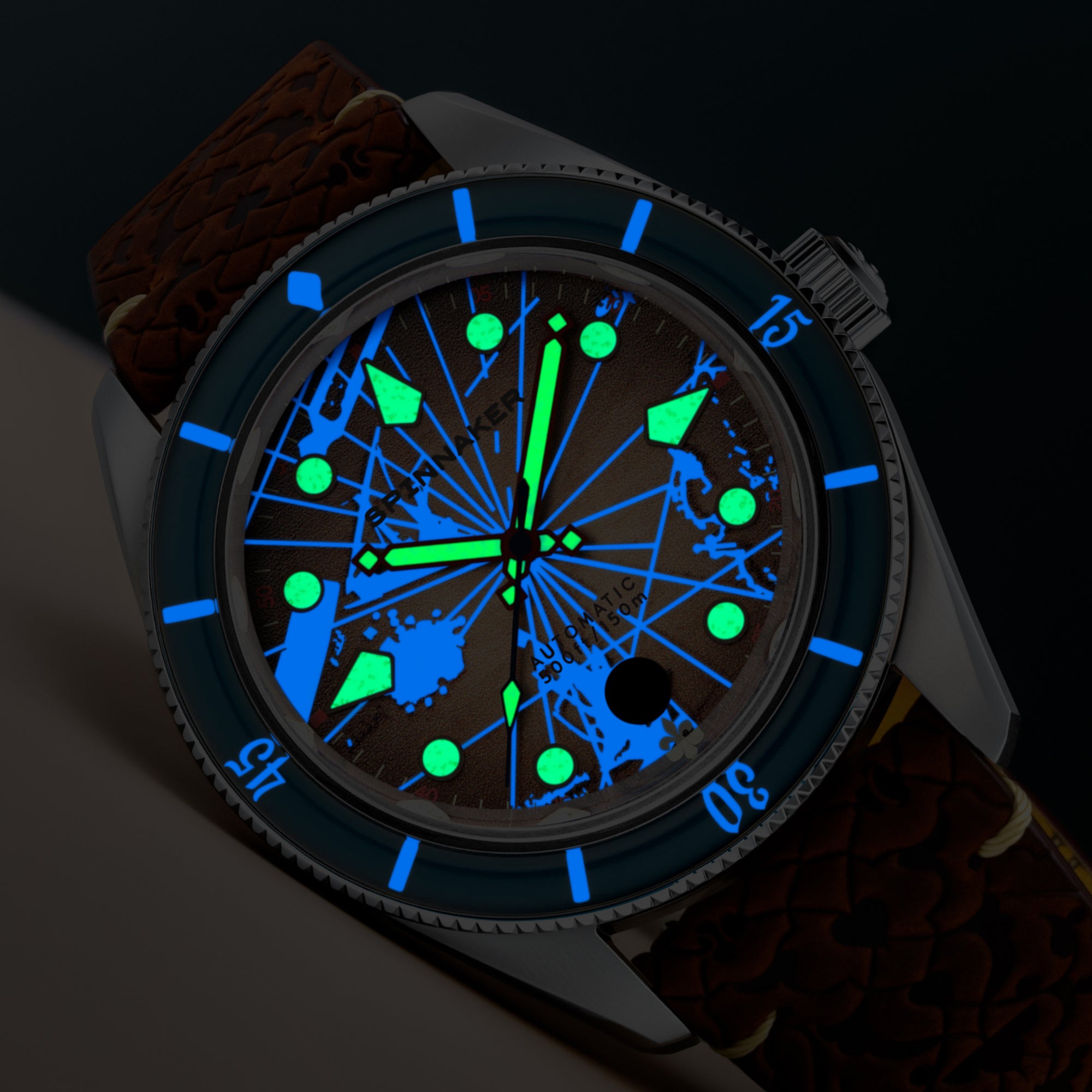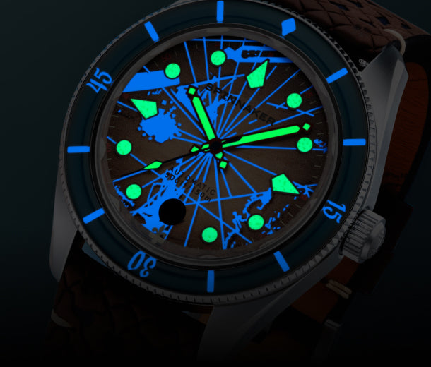 Designed for the avid diver and adventurer, our watches feature radiant luminescence that ensures clear readability in the darkest depths and low-light conditions. Whether exploring underwater realms or navigating night-time escapades, Spinnaker's luminous dials and hands provide the glow you need to stay on course.