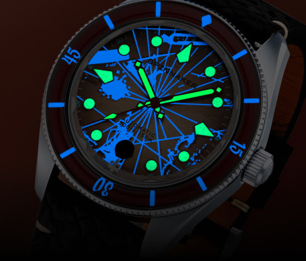 Designed for the avid diver and adventurer, our watches feature radiant luminescence that ensures clear readability in the darkest depths and low-light conditions. Whether exploring underwater realms or navigating night-time escapades, Spinnaker's luminous dials and hands provide the glow you need to stay on course.